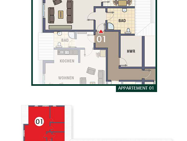 Das Appartement 1 (85 m²) verfügt über ein großes Wohnzimmer (50 m²) mit Essecke und einem großen Schreibtisch, ein Schlafzimmer mit Doppelbett, eine separate Küche sowie Badezimmer mit Dusche und WC. Optional können Sie als Aufbettung auch ein ausziehbares Bett für zwei Kinder nutzen. Somit bietet die Unterkunft Platz für maximal 4 Personen.